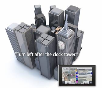 Новая система голосовых подсказок. Garmin Real Directions в процессе движения по маршруту, сообщает об объектах по которым вы сможете легко сориентироваться: светофоры, высотные здания, заметные достопримечательности и т.д. Например: «поверните налево, после башни с часами».
