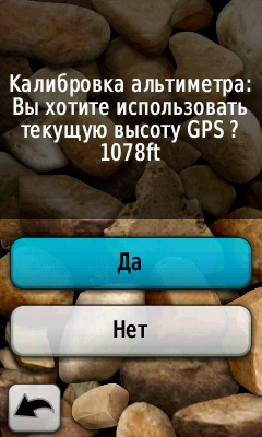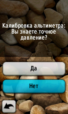 Далее следуем указаниям настроечного меню. Для ручной настройки альтиметра необходимо ввести точные данные высоты или уровня давления. Если параметры вам неизвестны, можно использовать данные самого GPS приемника. В данном случае система откалибрует альтиметр самостоятельно, используя за основу высоту, измеряемую по GPS приемнику.