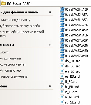 ASR - содержит файлы голосового управления: *.srd - основные голосовые команды, *.ASR - обеспечивает поддержку голосового ввода адреса.