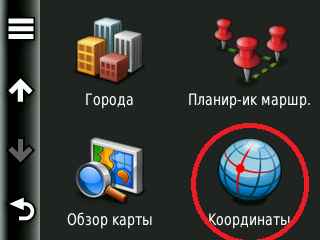 Чтобы перейти в раздел ввода по координатам нажмите «Куда?» затем стрелку вниз и «Координаты».