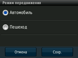 Когда навигатор работает в пешеходном режиме перед прокладкой маршрута он будет уточнять - двигаетесь вы пешком или на автомобиле.