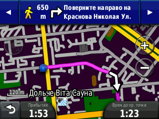 Прокладка маршрутов даже на большие расстояния (например, Киев-Мадрид) происходит быстро, значительно быстрее, чем в предыдущих моделях. По большей части пользовательский интерфейс аналогичен всей серии nuvi и это хорошо. : ) Интерфейс автомобильных приборов Garmin – самый простой и интуитивный из всех виданных мной. Хотя, к сожалению, до сих пор нет возможности исключать отдельные дороги из прокладки маршрута, что уже давно доступно на тех же ТомТом и Magellan, это одна из самых востребованных функций, и я не понимаю, почему Garmin до сих пор игнорирует ее.
