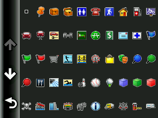 На карте, по умолчанию, сохраненные точки обозначаются флажком, чтобы легко отличать рядом стоящие точки друг от друга вы можете выбрать для них любую из нижеприведенных иконок: