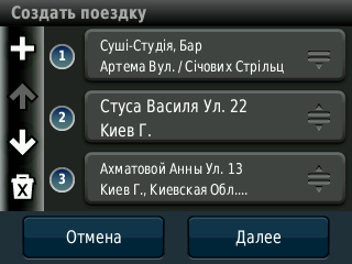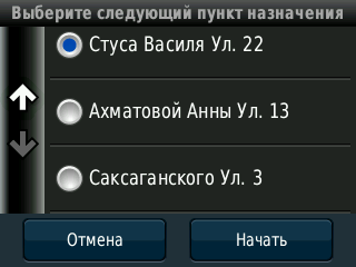 Когда вы начнете навигацию по выбранному маршруту, nuvi 2250 уточнит, к какой точке из списка вы хотите отправиться в первую очередь.