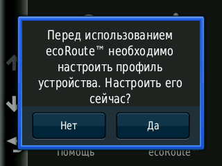 При первом включении ecoRoute вам предложат настроить профиль вашего автомобиля. Это необходимо чтоб указать некоторые данные: расход, тип топлива и цену на него. Нажмите «Да» для начала настройки.