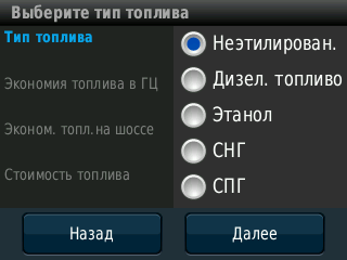 Выберите приоритетный тип топлива для вашего транспортного средства и нажмите «Далее».