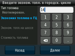 Затем необходимо указать расход топлива в городском цикле, то есть, сколько литров на сто километров расходует ваш автомобиль в городе.