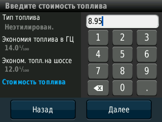 Для того чтобы составить отчет о пройденном маршруте в ecoRoute не обходимо ввести информацию о стоимости топлива, которое вы обычно используете в своем автомобиле