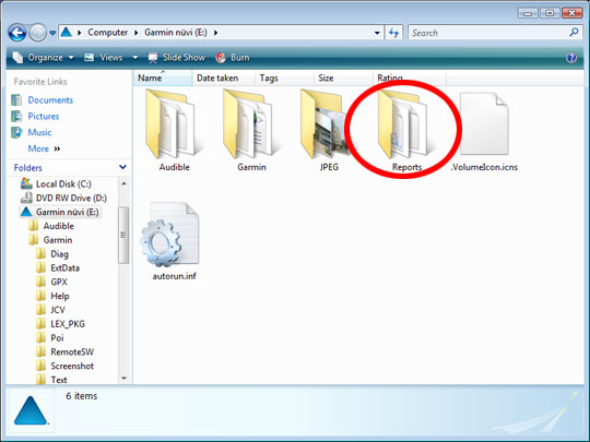 Транспортные отчеты, можно посмотреть непосредственно в nuvi 2250 или же переписать их на компьютер. Чтобы просмотреть отчет на компьютере присоедините к нему навигатор при помощи стандартного mini-USB кабеля и откройте папку Reports