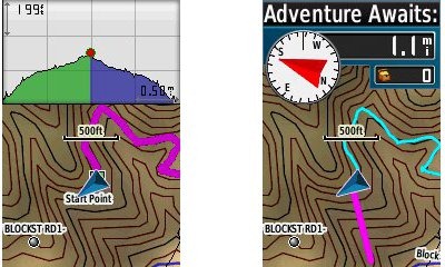 Кроме того точки могут добавляться пользователем вручную, что весьма полезно при предварительной прокладке маршрута в местности, где вы еще не бывали. Также треки можно загружать в аппарат с компьютера (а найти их несложно через интернет, воспользовавшись запросами типа .gpx и gps, или получив от ваших друзей). И, наконец, отличительной особенностью обновленной версии трековой навигации является то, что она показывает вам актуальное расстояние и расчётное время прибытия до следующей точки маршрута или финиша, а не «по прямой».